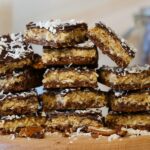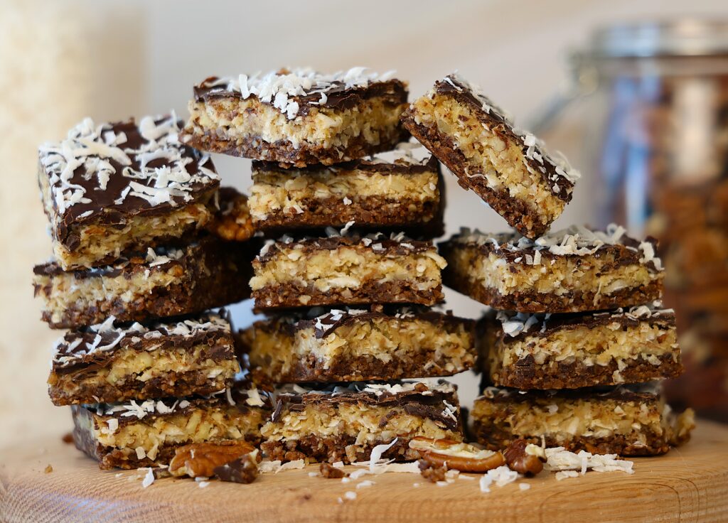 These no-bake German Chocolate Cake Bars have a rich chocolatey base, a coconut-pecan layer, and a simple dark chocolate topping. They’re so good, have all the classic German chocolate cake flavors, and are naturally sweetened with dates and maple syrup for a healthier take on a favorite.