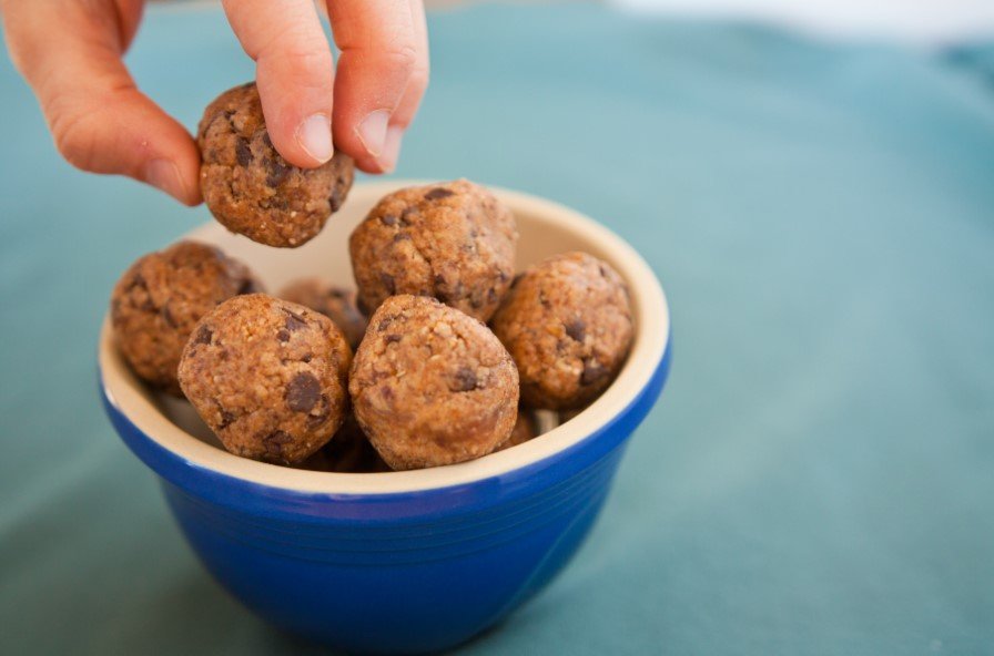 - Finally, scoop tablespoon size portions and roll into balls. Continue with the remaining mixture. You should have 16-18 cookie dough balls. Store in the refrigerator and enjoy!