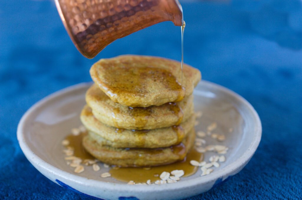 - Allow the batter to sit for 5 minutes while you heat up your pan or griddle. (Oats absorb moisture!)